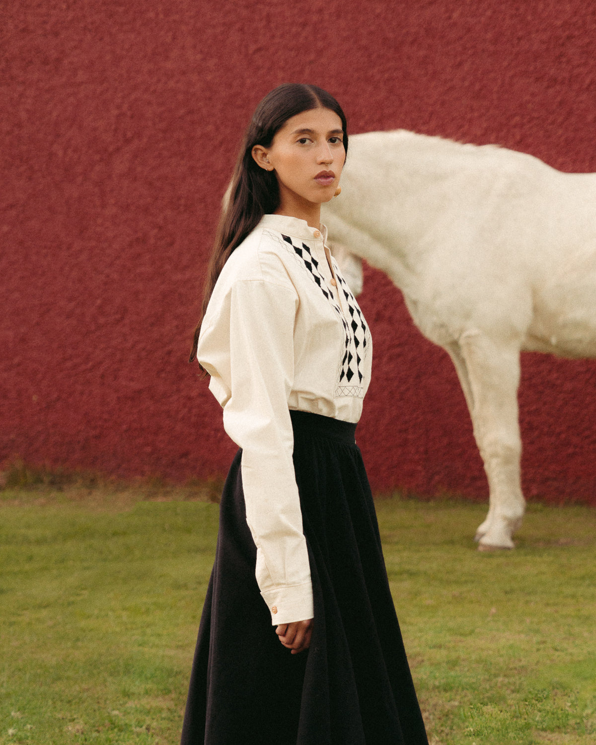 We shot our perfume campaign in Mexico City at the iconic Cuadra San Cristóbal, designed by Mexican architect Luis Barragán. The design principles of Mexican Modernism, the landscape, and the ranches and haciendas of rural Mexico directly inspired the design of the Perfume de la Tierra bottle. The eclectic pops of color, paired with natural wood notes and raw whites mirror the duality of our fragrance, and invite a homecoming to our roots.