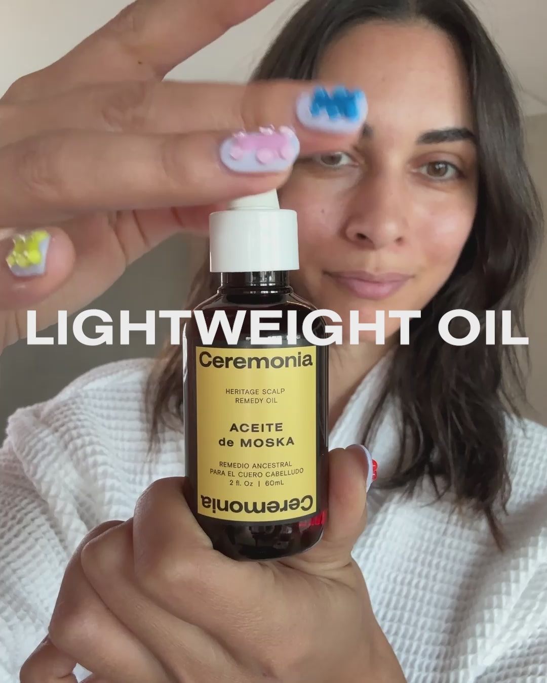 Step 1: Scalp Care – Pre-shower , apply Aceite de Moska directly to the scalp.