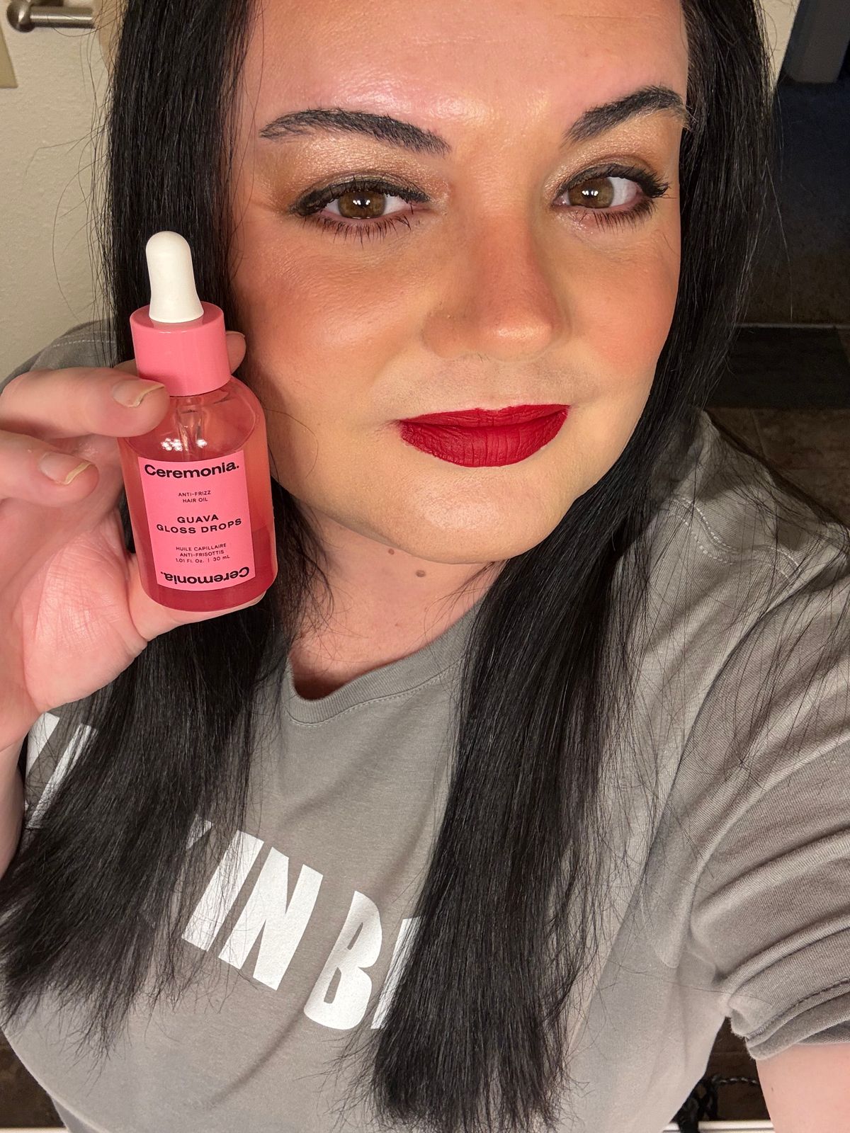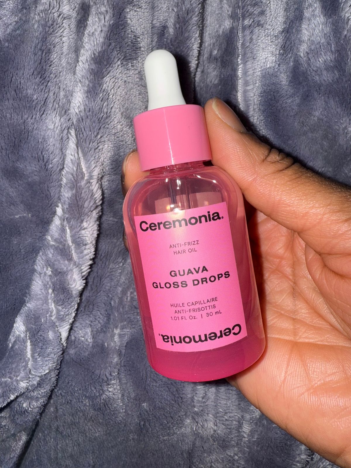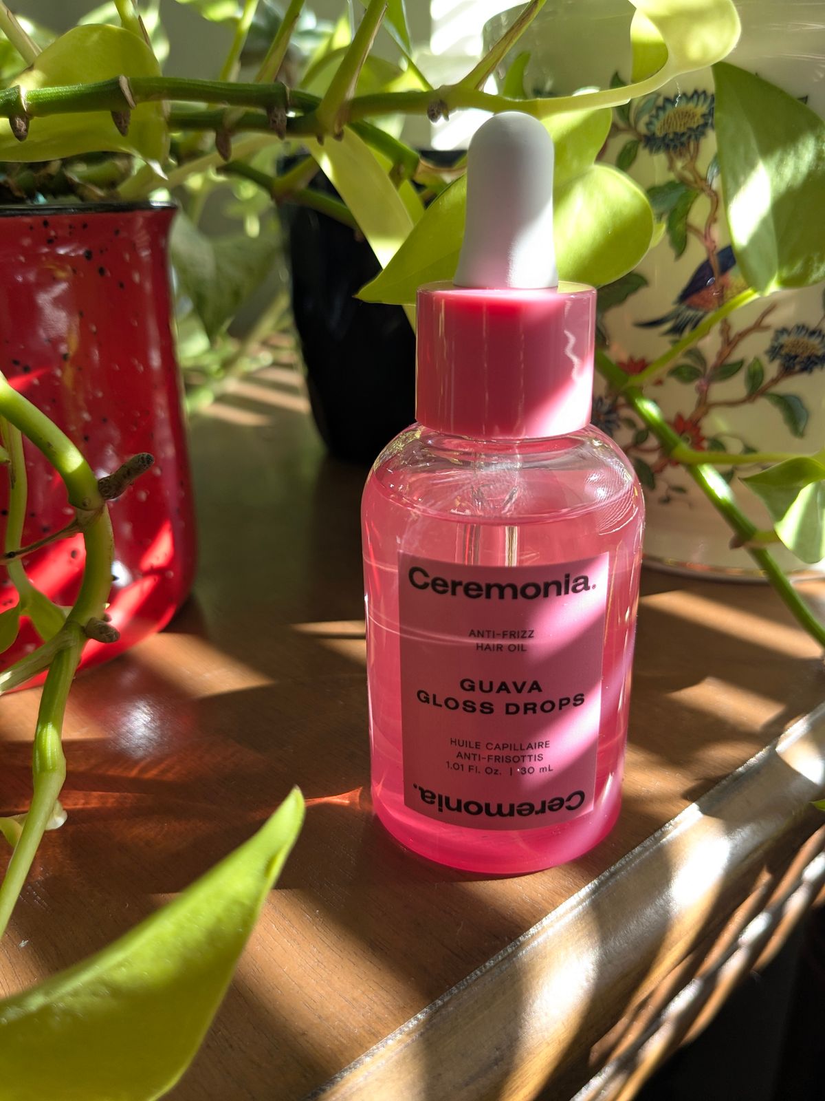 Guava Gloss Drops is a weightless, silicone-free treatment designed to melt into strands for instant luminosity and long-term cuticle repair.