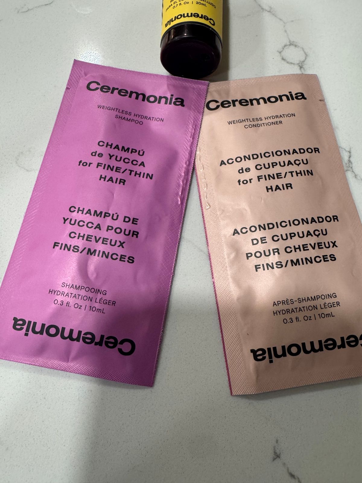 Love the product in normal size for my bathroom and I loved being able to travel with my favorites. My hair remain perfectly hydrated even when travelling.